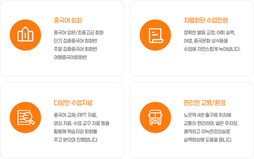 ¸ðµç Áß±¹¾î ¼ö¾÷Àº 100% ¼±»ý´Ô°ú ´ë¸éÀ¸·Î ÀÌ·ç¾î Áö¸ç, µè±â, Àбâ, ¸»Çϱâ, ¾²±âÀÇ ¾ð¾îÀÇ ³× ¿µ¿ª°ú